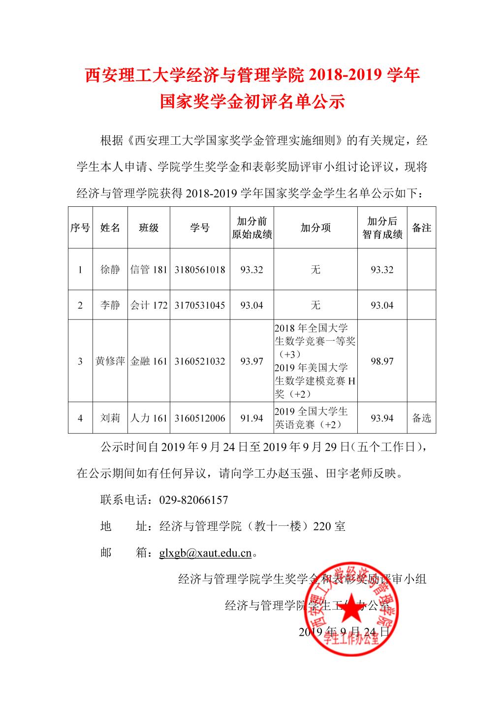 yl8858永利集团2018-2019学年国家奖学金初评名单公示