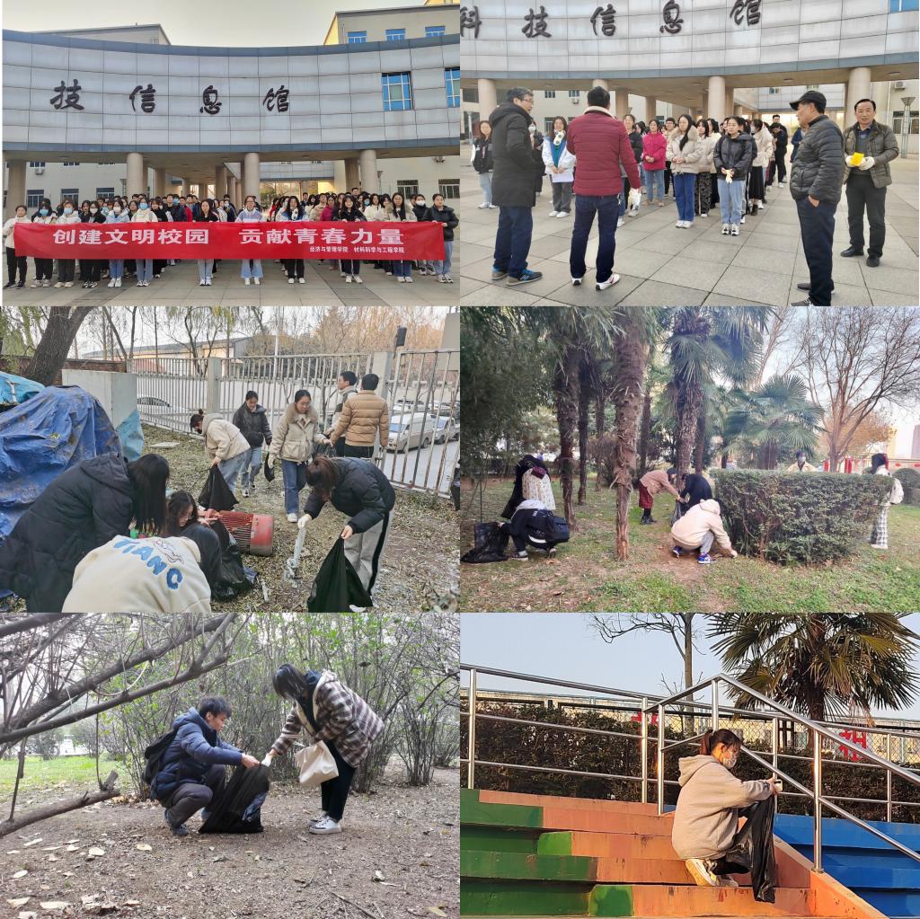 12月8日,yl8858永利集团联合材料科学与工程学院、后勤处开展“创建文明校园 贡献青春力量”校园卫生清扫活动,我院第73期校党课入党积极分子参加本次活动。