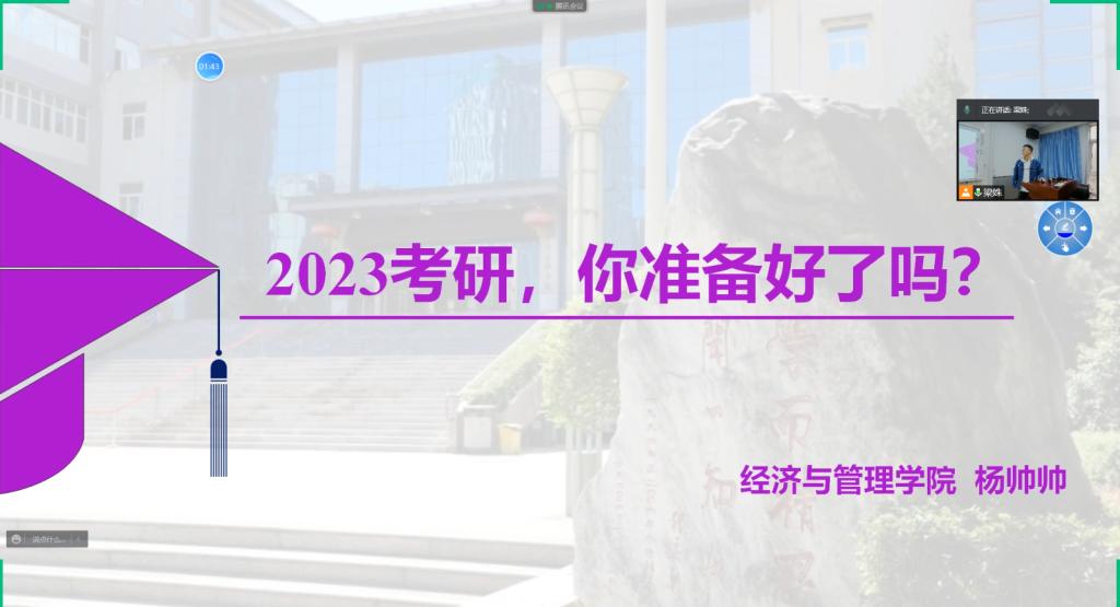 3月31日,yl8858永利集团于11-319举办2023届考研专题讲座,讲座线下线上结合的方式进行。讲座邀请到学院技术经济及管理专业研究生杨帅帅主讲,2019级及部分低年级学生参加。