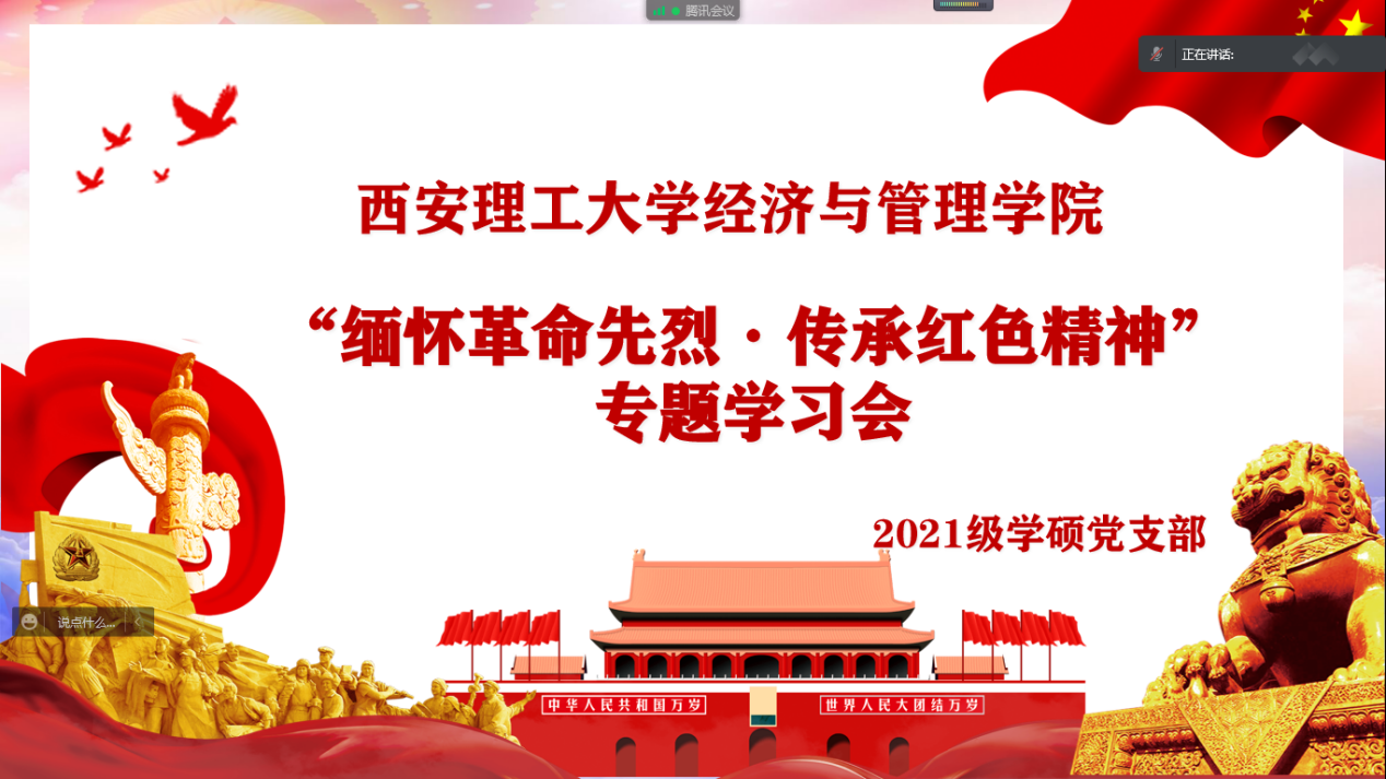 值此清明节即将到来之际,为加强爱国主义教育、弘扬光荣革命传统,进一步抒发对革命先辈的敬仰和追思之情,yl8858永利集团2021级学硕党支部于3月31日在线上组织开展了“缅怀革命先烈·传承红色精神”的专题学习会。会议由李通主持,支部党员及入党积极分子参加此次会议。