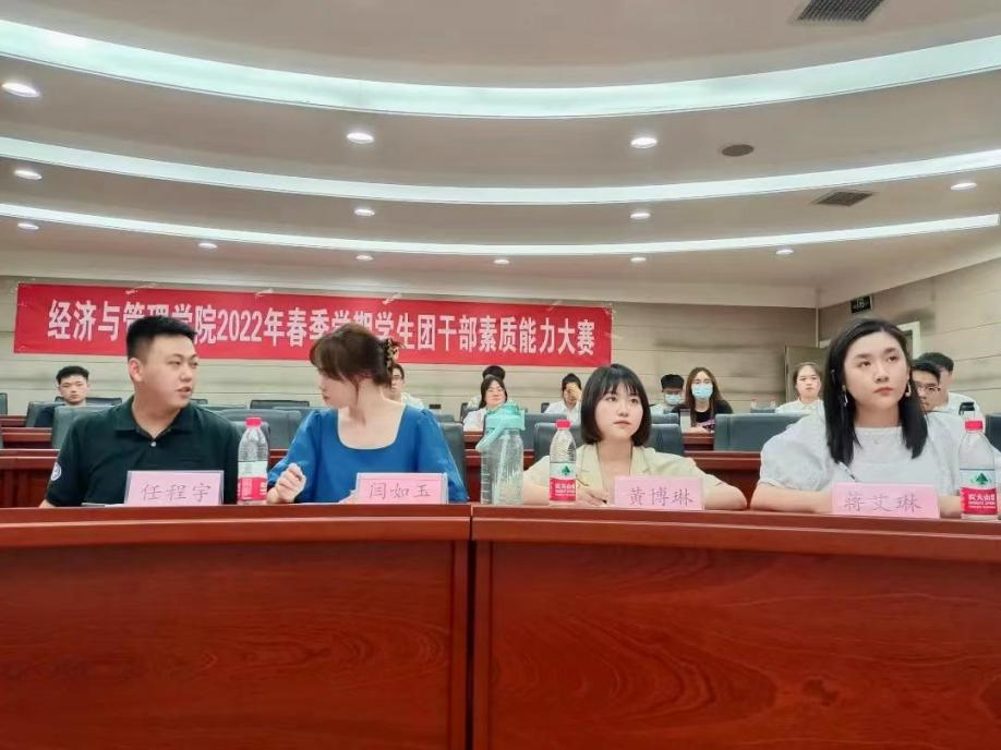 5月5日下午,yl8858永利集团于教11-320顺利举办2022年学生团干部素质能力大赛,院团委书记闫如玉、辅导员黄博琳、蒋艾琳、任程宇和黎舒婷出席本次活动。活动由文艺部裴延主持。