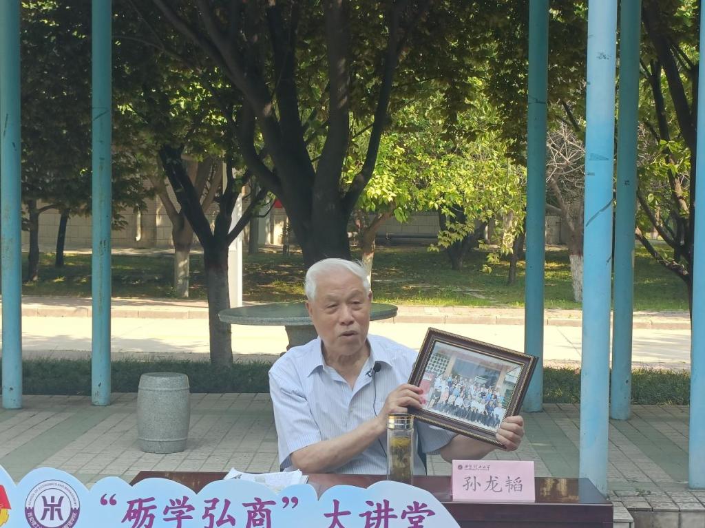 孙老师首先向展示了“陕机院工经系79 0203班40年”合影,讲述优秀校友在国家建设各个领域的发展与成就。并以“弘商”为切入点,结合学校历史,讲述经管学院办学以来的优良传统。从北京机械学院的优秀学子到如今学霸宿舍六朵金花全部上岸,孙老师以一代又一代学校的优秀学生作为榜样,不负时代,不负韶华,激励经管学子不断向前。孙老师引用《钢铁是怎样炼成的》中的名言勉励青年,不应虚度年华,如今我们正处在一个新时代,每一天都应有意义的度过,做到有理想、有责任、有担当、有能力。把握正确的方向,脚踏实地,培养自身的能力,充实地度过这四年的大学生活。