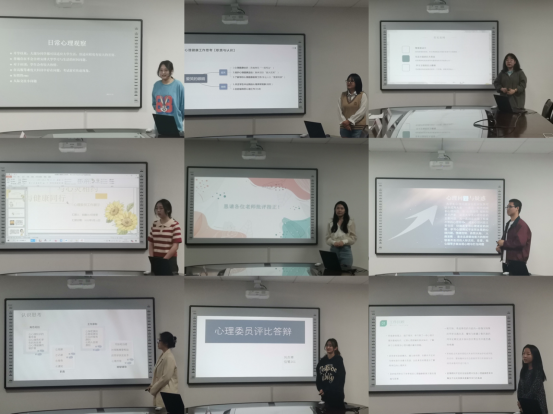 “妙趣横生”工作展示环节于5月11日晚在11-328举行,评委由辅导员姚伟华、苏瑾、任程宇、蒋艾琳和学院心理专干梁姝担任。从笔试环节中脱颖而出的9位心理委员以PPT展示形式汇报了个人工作情况。在工作展示过程中,9位心理委员通过班级心理健康活动、个人对工作职位的理解、班级心理健康工作经验分享、工作案例分析、班级工作计划等多个方面进行了交流,评委老师就心理委员的工作展示情况进行一一点评。通过工作交流和展示,心理委员们纷纷表示个人在知识储备、工作技能、活动组织等实际工作方面还有较大的进步空间,也将在班级心理健康工作实践中不断完善自己、服务班级同学。