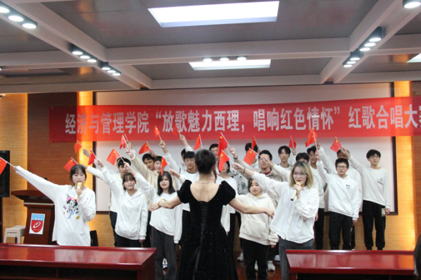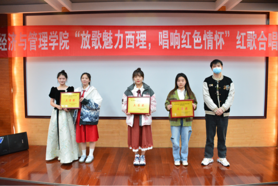 活动在《灯火里的中国》舞蹈中拉开帷幕。学院2022级共青团员组成的十四个合唱队,以炽热的深情、饱满激昂的歌声回顾党的光辉历程。他们热情饱满,气宇轩昂,用铿锵有力的声音歌颂了新时代经管青年对党、对国家、对社会主义的深厚情感。《我们走在大路上》、《万疆》、《我和我的祖国》、《不忘初心》、《强军战歌》、《走向复兴》、《红旗飘飘》、《我们都是追梦人》、《大中国》、《明天会更好》、《唱支山歌给党听》等一首首广为传唱的爱国主义歌曲动人心弦。经过紧张的角逐,管222班团支部摘得本次大赛一等奖,管224班、会221班团支部获得二等奖;会222班、经济221班、国贸221班团支部获得三等奖;大赛最佳创意奖由管223班获得。大赛还评选中最佳领唱李珂霏、最佳指挥李雅璇、最佳领诵张梓睿。