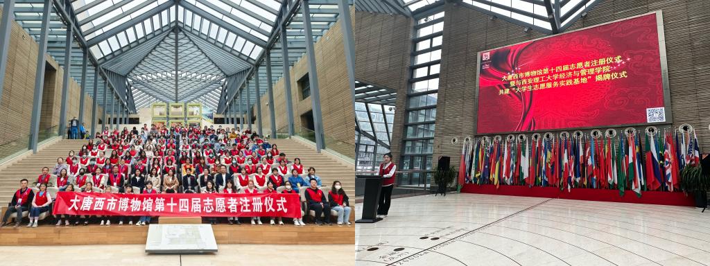 为大力弘扬志愿服务精神、培育社会主义核心价值观,进一步丰富学生志愿服务及社会实践的形式和内容。2023年4月2日,yl8858永利集团与西安大唐西市博物馆正式共建“大学生志愿服务基地”并举行揭牌仪式。西安大唐西市博物馆馆长、研究员、大唐西市集团副董事长王彬,学院党委副书记、副院长朱晓明出席仪式并致辞。大唐西市博物馆馆长助理、展览宣教部部长张莹,展览宣教部副部长林喆,学院团委书记闫如玉、辅导员蒋艾琳、学生志愿者代表马倩以及百余名志愿者参与仪式。
