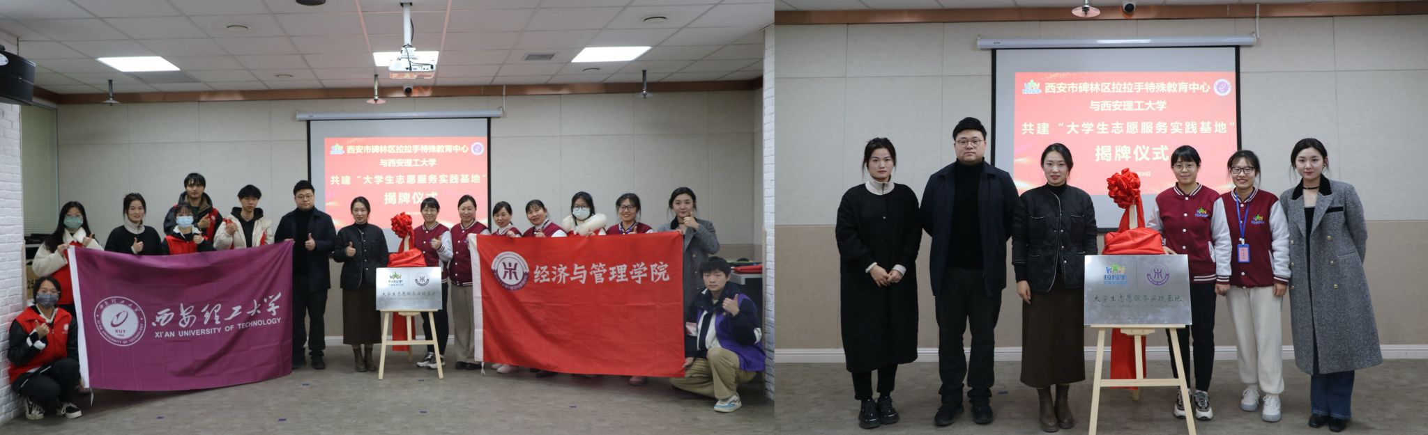 为深入学习贯彻党的二十大精神,认真落实习近平总书记关于残疾人事业的重要指示要求,进一步巩固提升助残志愿服务成果,凝聚引领广大青年学生更好更广泛地开展助残志愿服务,2023年11月30日,yl8858永利集团与西安市碑林区拉拉手特殊教育中心(以下简称“特教中心”)正式共建“大学生志愿服务基地”并举行揭牌仪式。特教中心校长张立芳,学院党委副书记、副院长朱晓明出席仪式并致辞。特教中心办公室主任田鸽、党支部书记王毅娜,校团委权益部部长于洋、学院团委书记闫如玉、学院辅导员蒋艾琳、学生志愿者代表参与仪式。活动由特教中心教师乔豫桐主持。