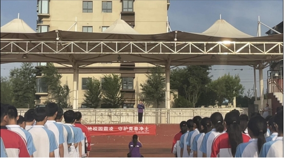 早上7时,实践队在学校操场举行了“反校园霸凌”主题宣讲会,约一千三百余名师生参加。宣讲会上,实践队队员艾淑敏详细生动地阐述了校园霸凌的定义、危害、预防及应对措施,并强调,校园霸凌不仅会对受害者造成身心伤害,还会影响家庭、校园乃至整个社会的安全稳定与和谐氛围,每个人都应该认识到校园霸凌的严重性,积极参与到反校园霸凌的行动中来。