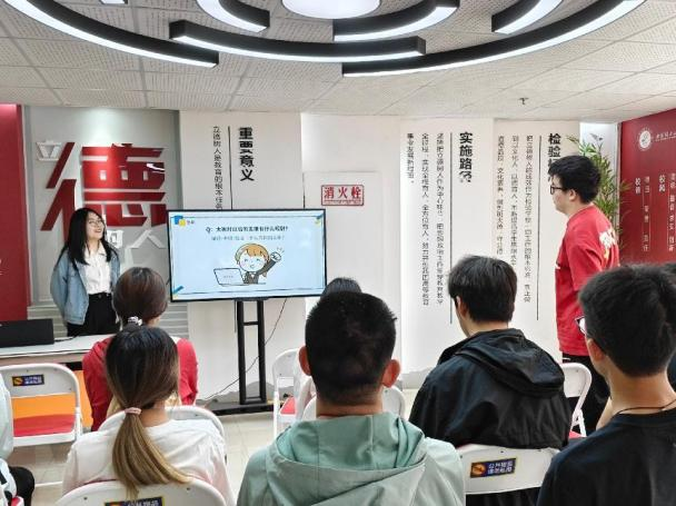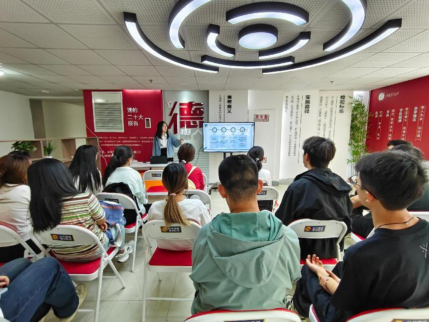 本次班会特邀学院大四学生陈璐怡担任主讲嘉宾。会议伊始,陈璐怡从自身经历出发,坦言大一时也曾因专业课程跨度大而感到迷茫。她建议学弟学妹,课堂学习是根基,但更要主动探索兴趣方向,通过选修课、科研项目或自身特长,找到自己的“长板”。此外她还分享了在学而思实习的经历,鼓励同学们通过校内实践、导师推荐、企业官网等多渠道争取机会。在提问环节中,同学们围绕“如何寻找实习机会”“非技术岗位的竞争力提升”“考研与就业如何抉择”等问题展开讨论,陈璐怡一一解答并为学弟学妹们提出了忠告“机会是留给有准备的人。”