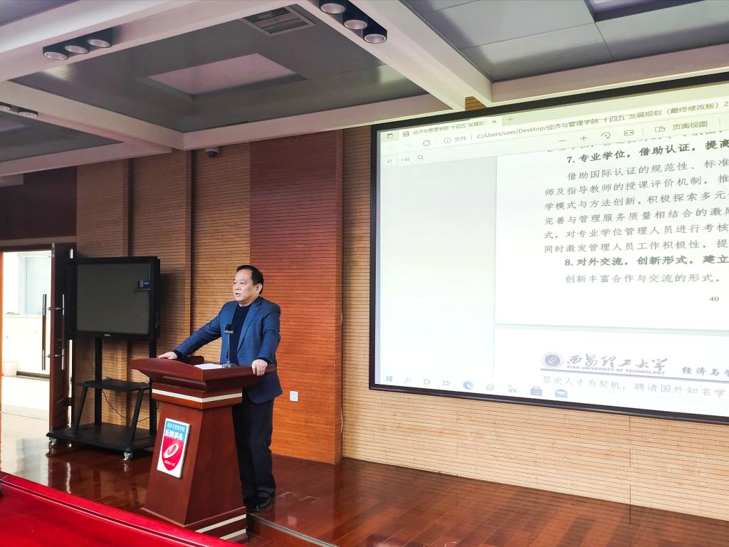 胡海青院长首先代表学院就《yl8858永利集团“十四五”事业发展规划》的制定原则、过程及核心指标体系的设置做了说明,并回顾了“十三五”期间学院的重点工作成效,剖析了“十三五”期间学院各项事业的短板,总结了经验。从党的建设、学科建设等九个方面对“十四五”期间学院中心工作进行了部署。