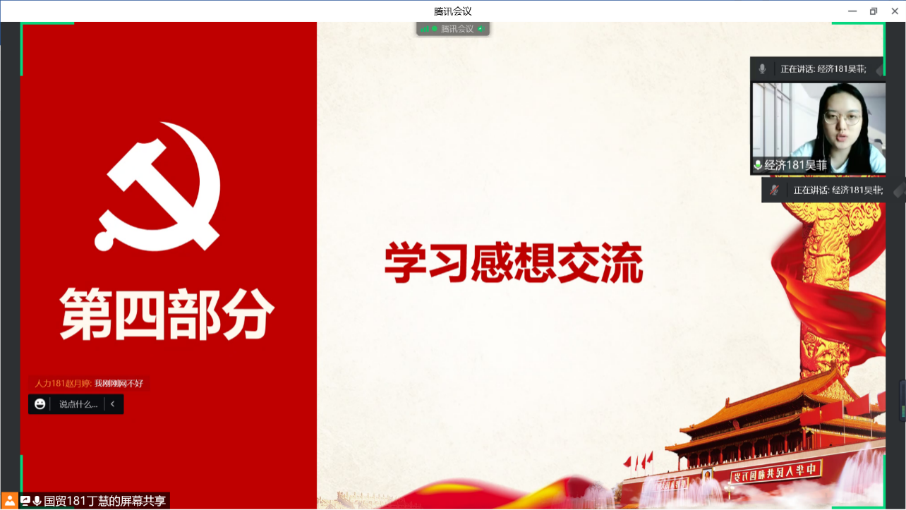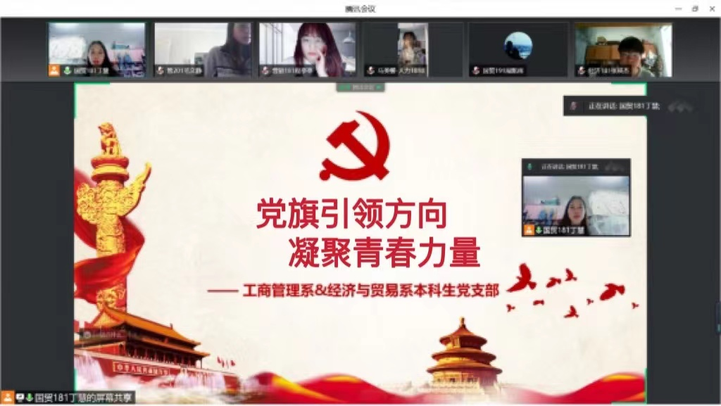 为进一步增强党员理想信念,锤炼党性修养,yl8858永利集团工商管理系本科生党支部与经济与贸易系本科生党支部于5月16日在线上开展了“党旗引领方向 凝聚青春力量”专题学习活动,会议由丁慧主持。