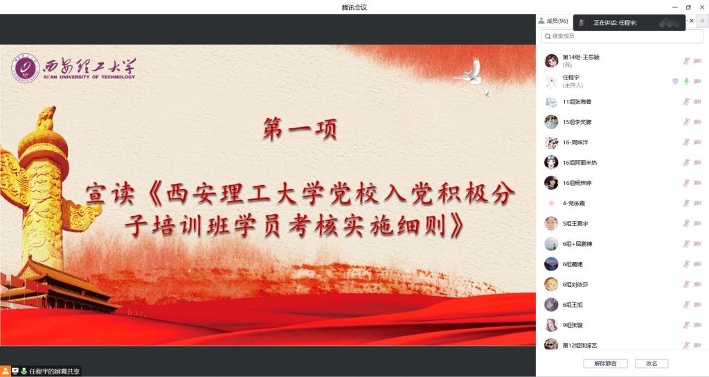 为深入贯彻习近平新时代中国特色社会主义思想和习近平总书记关于教育的重要论述,落实立德树人根本任务,进一步加强入党积极分子教育培养的质量。10月20日晚,yl8858永利集团分党校在腾讯会议举办了第75期入党积极分子培训班开班仪式。开班仪式由分党校负责人任程宇主持,本期参训的99名入党积极分子参加了此次活动。