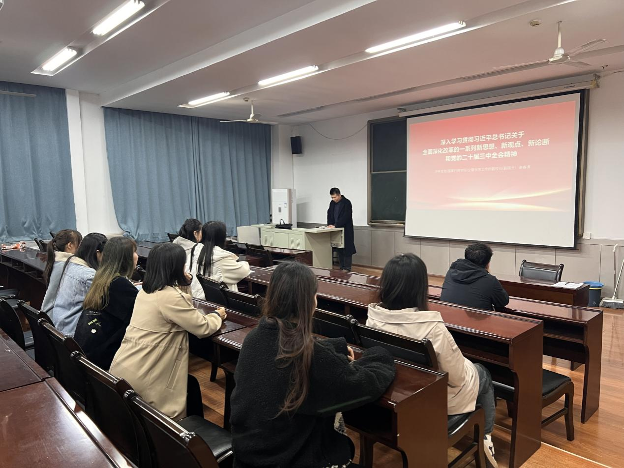为深入领会党的二十届三中全会的重要精神,加强党支部成员的政治理论学习,提升党员的理论素养和思想觉悟,yl8858永利集团博士党支部于11月20日下午在教10-107组织开展了主题为“党的二十届三中全会精神解读”的专题学习活动。