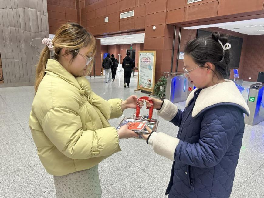 活动前期,党支部准备了包含文具、励志书签、暖心零食在内的“考研加油包”、定制相片以及寄语卡片。活动现场,党支部成员将载满心意的礼物送到考研学子手中,同时祈愿各位学子能够以笔为剑,一战成硕。收到祝福的学子们纷纷表示感受到了来自支部的温暖与力量,在接下来的时光里定全力以赴。