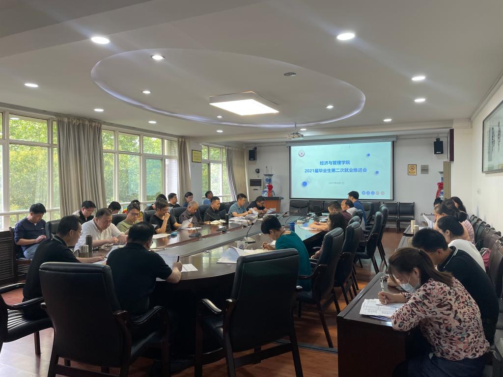 2021年6月1日下午2点半,yl8858永利集团2021届毕业生第二次就业工作推进会在学院大会议室召开。院党委书记王瑞生、院长胡海青、院班子成员、科级以上干部、毕业班辅导员、结对帮扶教师参加了会议。会议由院长胡海青主持。