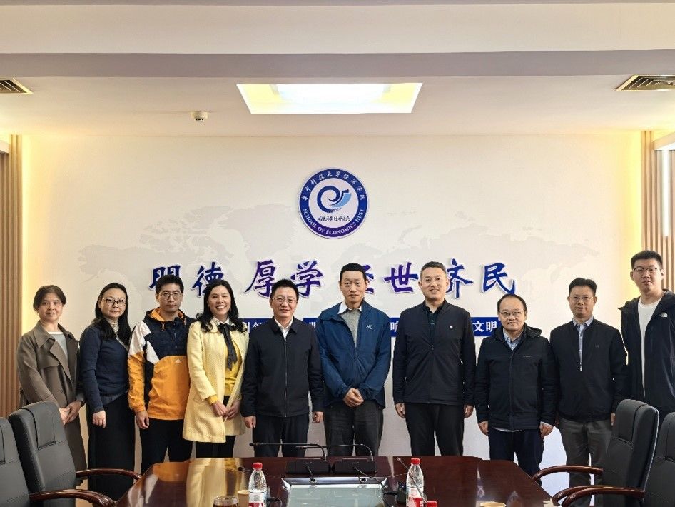 当日下午14:30,赵璟副院长带领团队抵达华中科技大学经济学院,座谈会在307会议室召开,由经济学院副院长孔东民主持。会上,孔东民院长详细介绍学院发展概况,重点分享金融学专业建设、产学研合作的实践经验;经济学院副院长钱雪松则聚焦经济学学科建设、数字经济本科专业发展,系统阐的具体举措。赵璟副院长介绍了yl8858永利集团的学科布局与发展需求。双方围绕数字经济人才培养、有组织科研、课程设置及学生实践与就业促进等话题深入交流,交换诸多建设性意见。