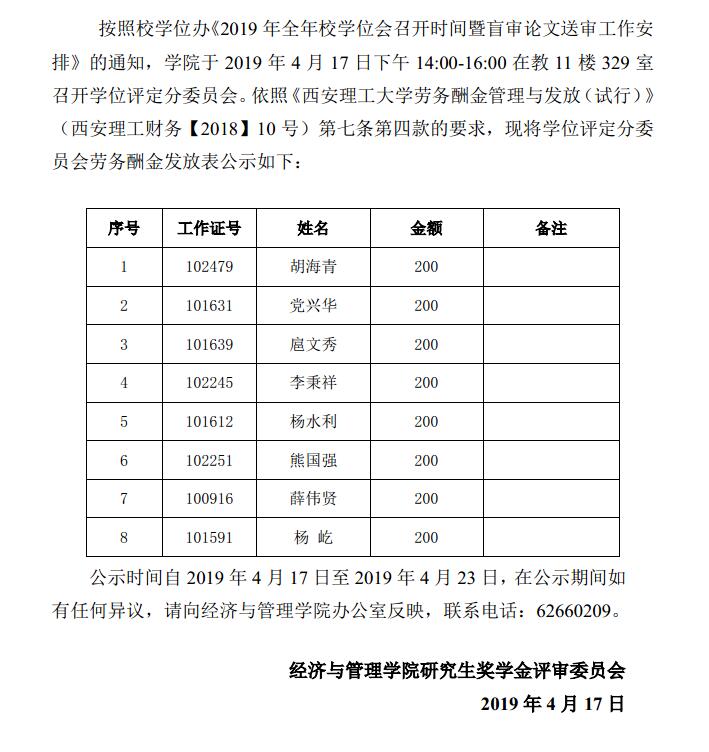 yl8858永利集团2018年学位评定分委员会劳务酬金发放公示单