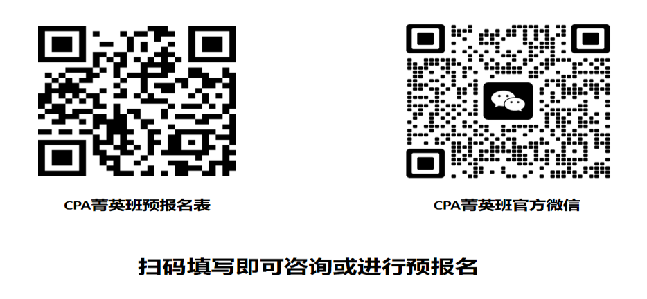 有意向报读CPA菁英班的学生,请扫码填写预报名表,或添加CPA菁英班老师微信。