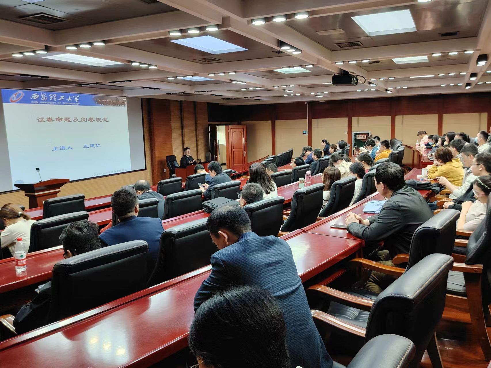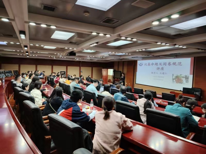 王艳副院长介绍了举办本次教学法研讨活动的意义;王建仁老师根据自己多年教学和系主任工作经验,以及作为校督导工作体会,结合学院实际,从试卷命题、参考答案与评分标准、命题管理、阅卷要求、试卷分析、教务处试卷检查等方面进行了详细阐述,并就青年教师关心的问题进行了详细解答。