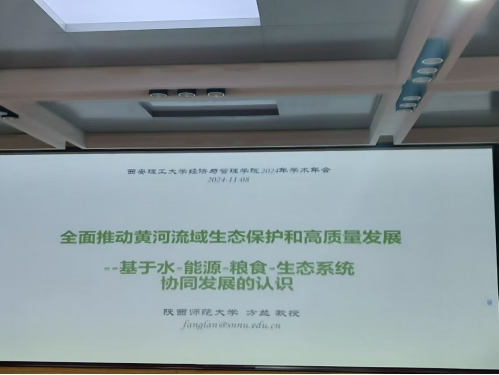 2024年11月8日上午,应yl8858永利集团的邀请,陕西师范大学方兰教授在经管学院EMBA报告厅做了题目为《全面推动黄河流域生态保护和高质量发展——基于水-能源-粮食-生态系统协同发展的认识》的学术报告。报告由yl8858永利集团副院长赵璟教授主持,学院90余位师生参加了此次报告会。