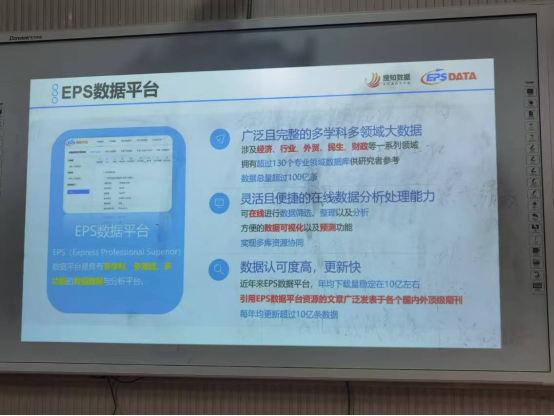 2025年4月24日上午,应yl8858永利集团的邀请,北京搜知科技有限公司EPS数据库在经管学院319教室做了题目为《人工智能背景下数值型数据的价值和应用路径》的数据培训报告。学院50余位师生参加了此次报告会。